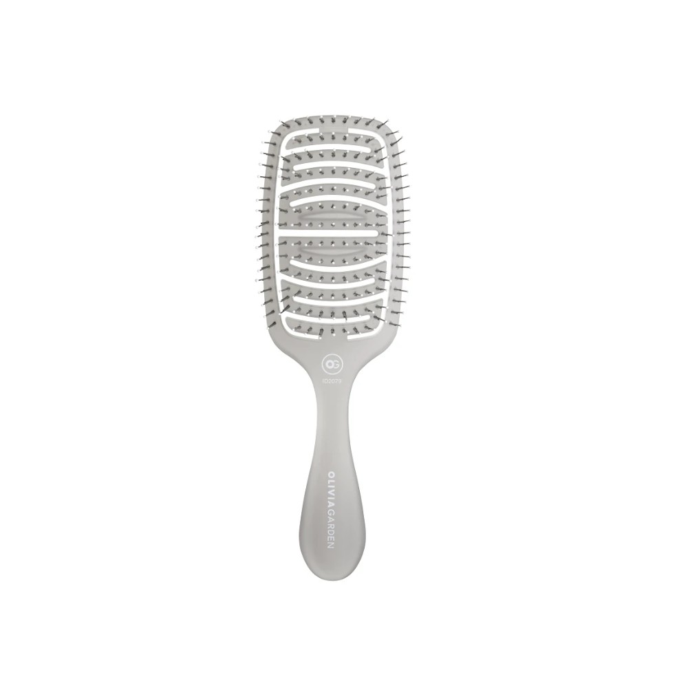 Olivia Garden Essential Care Flex četka za srednje gustu kosu, koja ubrzava vreme sušenja. Ova visoko kvalitetna četka nežno klizi kroz kosu i raščešljava zamršene delove sa mnogo manje otpora. Prilagođava se koži glave, omogućava vam da zahvatite veće pramenove u jednom potezu, skraćuje vreme sušenja i na taj način sprečava toplotna oštećenja kose. Njen specifičan dizajn omogućava toploti da nesmetano kruži i omogući brzo i efikasno feniranje dok češljate kosu. Fleksibilni zupci lako klize kroz kosu i smanjuju opadanje kose, dok zaobljeni vrhovi zubaca nežno masiraju skalp. Četka je dostupna u hladno sivoj nijansi.