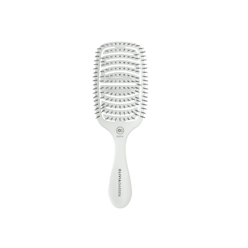 Olivia Garden Essential Care Flex četka za tanku kosu, koja ubrzava vreme sušenja. Ova visoko kvalitetna četka je specijalno dizajnirana da nežno klizi kroz vlasi i raščešljava zamršene delove sa mnogo manje otpora i bez lomljenja. Prilagođava se koži glave, omogućava vam da zahvatite veće pramenove u jednom potezu, skraćuje vreme sušenja i na taj način sprečava toplotna oštećenja kose. Njen specifičan dizajn omogućava toploti da nesmetano kruži i omogući brzo i efikasno feniranje dok češljate kosu. Fleksibilne iglice lako klize kroz kosu i smanjuju opadanje kose, dok zaobljeni vrhovi zubaca nežno masiraju skalp. Četka je dostupna u snežno beloj boji.