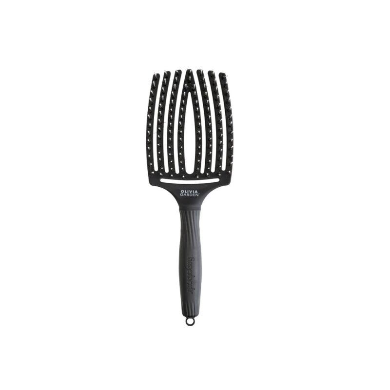 Olivia Garden Fingerbrush Combo velika četka za kosu. Očešljajte zamršenu kosu lako i bezbolno. Ova profesionalna četka sadrži kombinaciju najlonskih i veprovih iglica i ima jedinstveni dizajn u obliku ljudske ruke. Blago je zakrivljena, savršeno se prilagođava prirodnom obliku glave i raščešljava najzamršenije delove kose i povećava prirodni sjaj. Zbog svoje velike površine idealna je za feniranje, stilizovanje i svakodnevnu negu. Zaobljene, antistatičke iglice sprečavaju statički elektricitet i nežne su prema koži glave. Omogućava veći protok vazduha i ubrzava sušenje kose. Izuzetno lagana i udobna drška četke je prijatana i mekana za ruku.