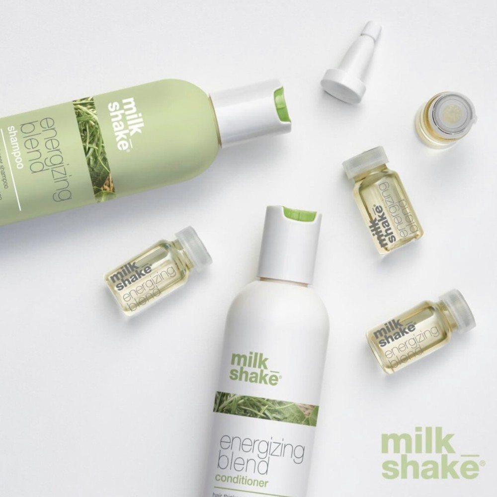 Milkshake Energizing Blend balzam za jačanje i obnovu kose. Oživite slabu, tanku i proređenu kosu. Ovaj proizvod je formulisan energetskom mešavinom prirodnih sastojaka, koji nežno čiste kožu glave i osvežavaju je esencijalnim uljima. Nakon svakog pranja, vaša kosa će izgledati zdravije, jače, energičnije i osveženo. Balzam pruža hidratantni spa tretman i pruža puniji izgled. Dubinski neguje vlasi i ostavlja kosu zaglađenom i mekanom.