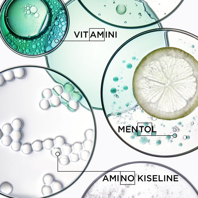 Formula je obogaćena amineksilom, koji zaustavlja prerano starenje i stanjivanje kose. Ramnoza stimuliše kožu glave, a arginin je polu esencijalna aminokiselina i antiokdisans, koja ima bitnu ulogu u izgradnji kolagena i keratina u koži i kosi. Vitamin PP ima vazodilatacijski efekat, koji stimuliše cirkulaciju krvi u skalpu i podstiče rast folikule kose i obnavljanje ćelija.