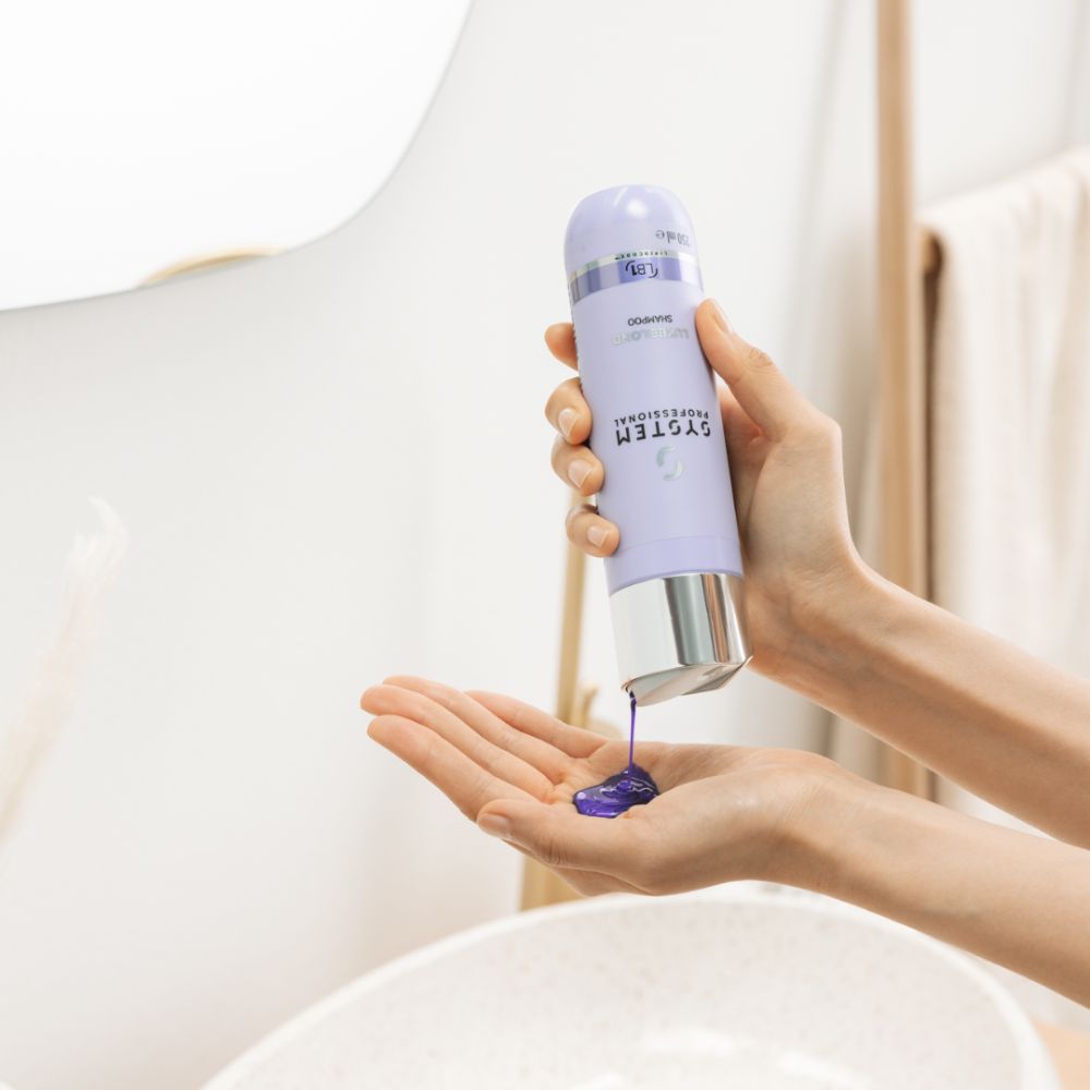 System Professional LuxeBlond šampon za svakodnevnu negu plave kose. Uklonite neželjene narandžaste i žute tonove i podtonove. Ovaj proizvod nežno, ali efikasno uklanja sve tragove nečistoća i ostatke proizvoda. Uz pomoć ljubičastih pigmenata neutrališe tople, mesingane tonove i održava hladan ton plave kose. Olakšava češljanje i oblikovanje kose i ima laganu teksturu, koja ne otežava dlaku. Ostavlja kosu čistom i mekom. Ovaj proizvod je pogodan za sve tipove plave i blajhane kose.