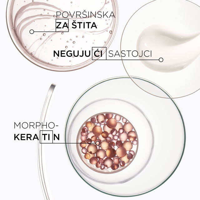 Formulisan je Morpho-Kératine™ kompleksom, koji sadrži aktivne sastojke za oblikovanje i polimere za oblikovanje površine (Morpho-Constituting Agents + Surface-Morphing Polymers). Oblaže svaku vlas kose i vraća im snagu i homogenost, za savršeno poslušnu kosu. Takođe sadrži omekšivače, koji pružaju ekstremnu mekoću i lipidne agense, glupu kozmetičkih lipida, koji štite od frizz efekta.