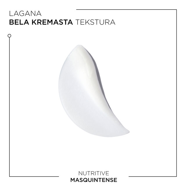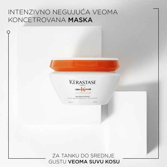 Kérastase Nutritive Masquintense visoko koncentrovana, kremasta maska za negu suve kose. Ovaj intenzivno negujući proizvod, koji sadrži proteine prirodnog porekla, je idealan za tanku do srednje gustu kosu. Bogata formula dubinski hrani i jača suvu i oštećenu kosu. Bela, kremasta tekstura ne otežava dlaku i i vraća joj mekoću i sjaj. Pruža kosi potrebne hidratantne i hranljive materije i sprečava gubitak vlažnosti do 72h.