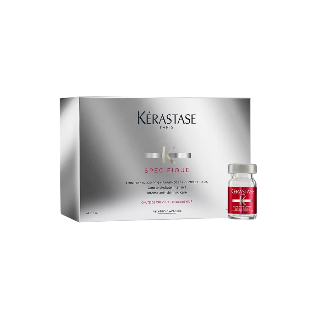 Kérastase Specifique Aminexil Force koncentrovan tretman za kosu koja opada. Povećajte gustinu i kvalitet vaše kose. Ovaj snažni tretman u ampulama je pogodan za borbu protiv genetskog ili privremenog gubitka kose. Sprečava opadanje kose, poboljšava kvalitet i gustinu vlasi, a istovremeno štiti od oksidativnog stresa. Formulisan je amineksilom, koji čuva oko 140 vlasi dnevno i povećava elastičnost vlasišta. Ove ampule će vam pomoći da produžite životni vek kose, bore se protiv očvršćavanja kolagenskog sloja i poboljšava mikrocirkulaciju skalpa. Vaša kosa će manje opadati, a oblikovanje će biti olakšana zahvaljujući jačoj i gušćoj kosi sa većim volumenom. Pakovanje sadrži 42 ampule po 6ml.