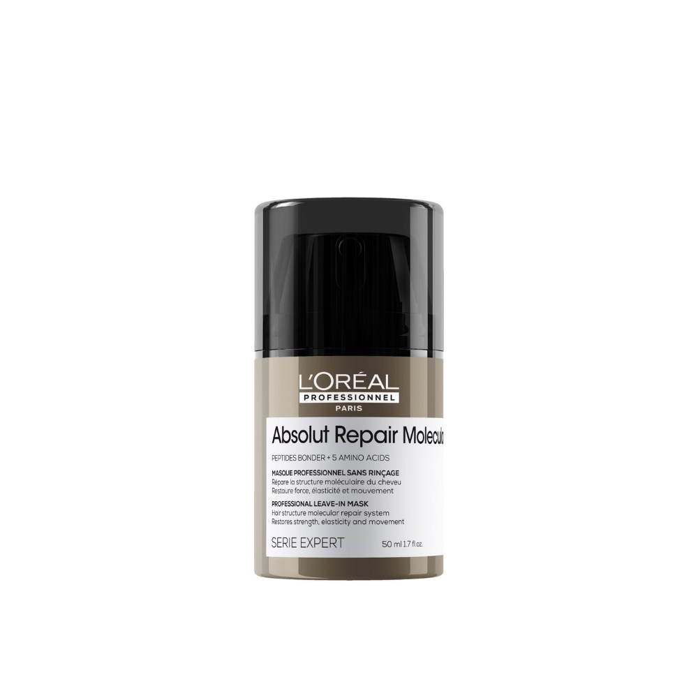 Koristite celu Absolut Repair Molecular liniju za rutinu nege kose. Nakon pranja kose sa L’Oreal Professionnel Absolut Repair Molecular Shampoo i L’Oreal Professionnel Absolut Repair Molecular Rinse-Off Serumom, koji se ispira, nanesite masku na peškirom prosušenu kosu. Nanesite je na dužinu i krajeve. Ne ispirati. Nastavite dalje korake sušenja i stilizovanja kose.