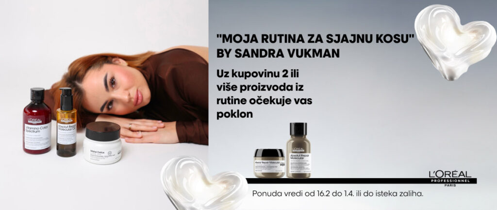 Uz kupovinu 2 ili više proizvoda iz Sandrine rutine u periodu od 16.02. do 01.04. (ili do isteka zaliha), na poklon dobijate Absolut Repair Molecular šampon 100ml ili masku 75ml.