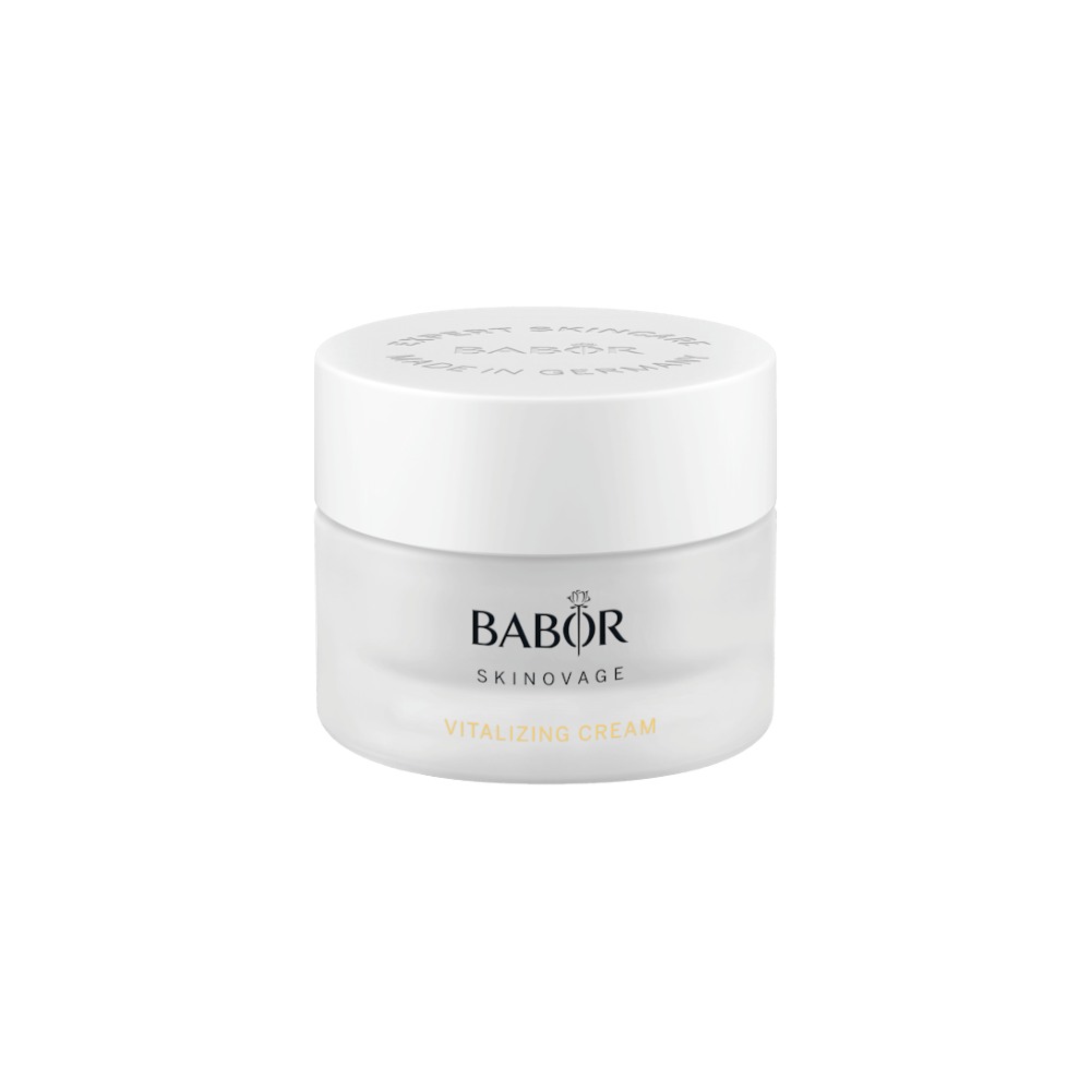 Babor Skinovage Vitalizing krema za umornu kožu, kojoj je potrebna regeneracija. Zaštitite kožu od svakodnevnih oštećenja i poboljšajte njenu ukupnu teksturu. Ova krema sadrži efikasnu kombinaciju aktivnih sastojaka, koji oporavljaju kožu i jačaju zaštitnu barijeru, kako bi je zaštitila od oksidativnog stresa. Pospešuje obnavljanje ćelija i prirodni proces regeneracije kože. Sprečava gubitak vlažnosti i sprečava pojavu znakova starenja. Povećava elastičnost i prikriva nepravilnosti na koži, kako bi vaša koža izgledala glatko i svežije. Ne sadrži gluten, parabene, mineralna ulja i silikone.