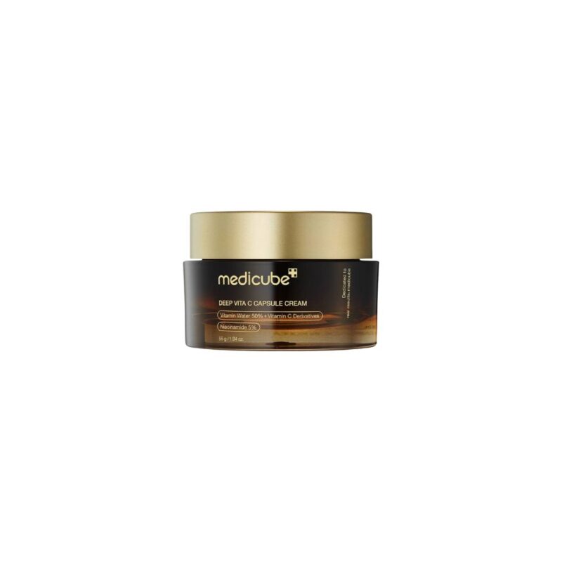 Medicube Deep Vita C Capsule krema za lice, u kapsulama. Proizvod sa jedinstvenom teksturom i maksimalnom efikasnošću. Ova krema je obogaćena vitaminom C i pruža hidrataciju i ujednačen ten. Kombinuje snagu čistog vitamina C sa inovativnom, dvostrukom teksturom, koja se prilagođava svim tipovima kože. Zlatne, vitaminske kapsule sadrže posebno odabrane hidratantne ekstrakte, niacinamid i askorbinsku kiselinu, zahvaljujući kojima ujednačava ten. Smanjuje vidljivost tamnih fleka i sprečava hiperpigmentaciju. Transparentni gel je obogaćen ferulinskom kiselinom i brojnim vitaminima, koji štiti kožu od štetnih faktora iz okruženja. Kombinacija ove dve komponente, pruža jedinstvenu negu za vašu kožu. Lagana, nemasna tekstura se brzo upija i ostavlja kožu glatkom i hidriranom. Ovaj proizvod je pogodan za sve tipove kože, uključujući i osetljivu kožu.