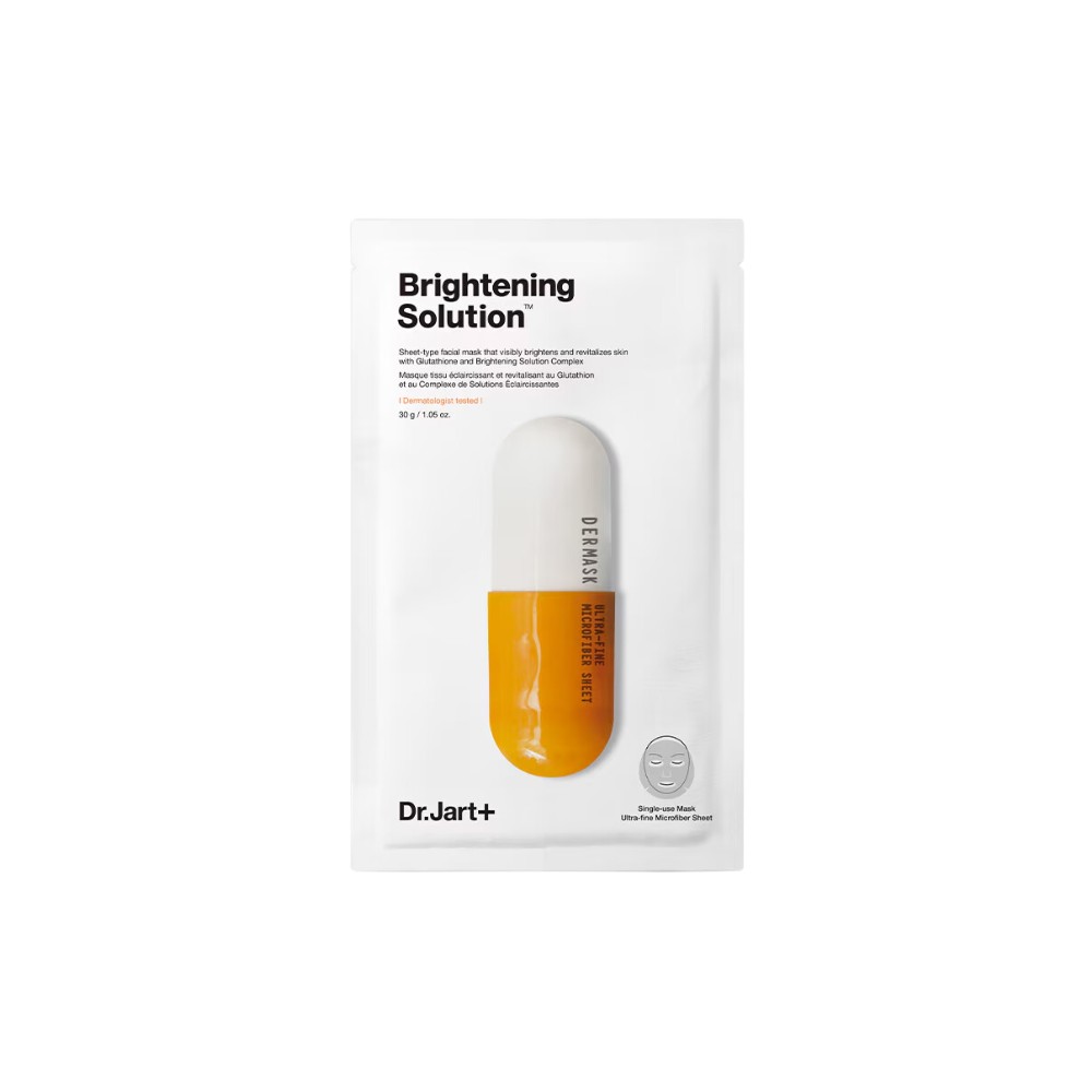 Dr.Jart+ Brightening Solution maska za lice, koja trenutno ujednačava ton kože. U samom pakovanju nalazi se ukupno 5 maski. Probudite umornu kožu i vratite joj mladalački izgled. Maska je napravljena od mekanog mikrofibera, koji nežno prijanja uz kožu i obezbeđuje efikasnu apsorpciju aktivnih sastojaka. Posvetljava tamne fleke i sprečava hiperpigmentaciju. Štiti kožu od štetnih faktora iz okruženja i smanjuje crvenilo. Ostavlja kožu mekom i blistavo sjajnom, uz prijatan osećaj osveženja. Proizvod je dermatološki testiran i pogodan je za sve tipove kože.